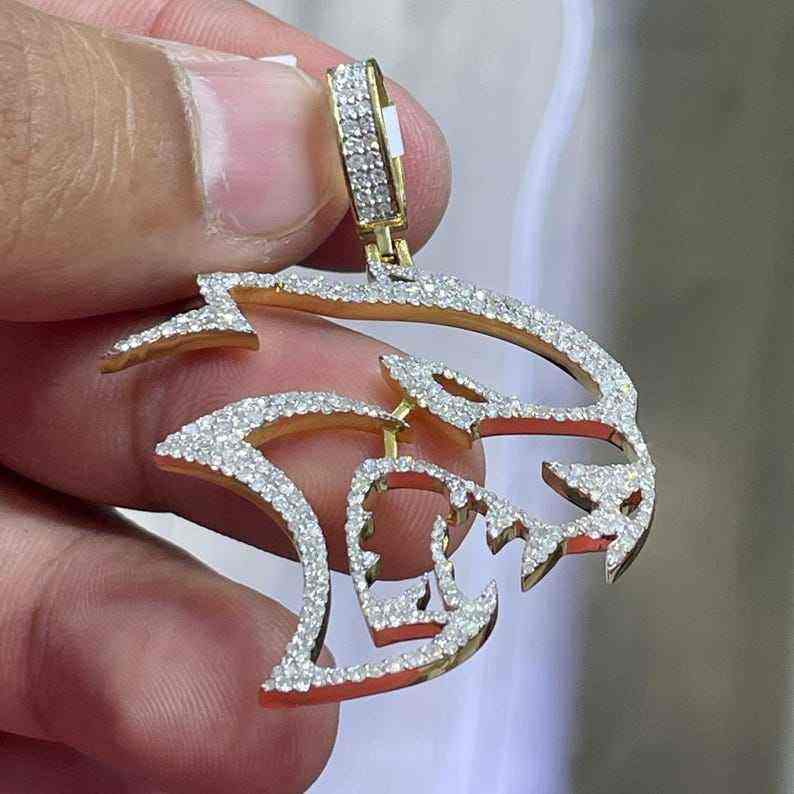 จี้เพชรโมอิสซาไนต์ทรงบริลเลียนต์ 1.50 กะรัต ชุบทอง 14K บนตัวเรือนเงินสเตอร์ลิง ดีไซน์หรูหราสไตล์ฮิปฮอป รุ่น Dodge Hellcat Custom
