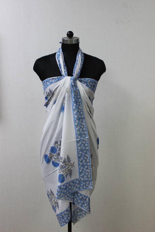 Dodger ผ้าโสร่งผ้าฝ้ายเนื้อนุ่มสีฟ้าชุดชายหาดพิมพ์ลายดอกไม้อินเดียสำหรับแม่เพื่อนเพื่อนเจ้าสาวหรือผู้หญิง