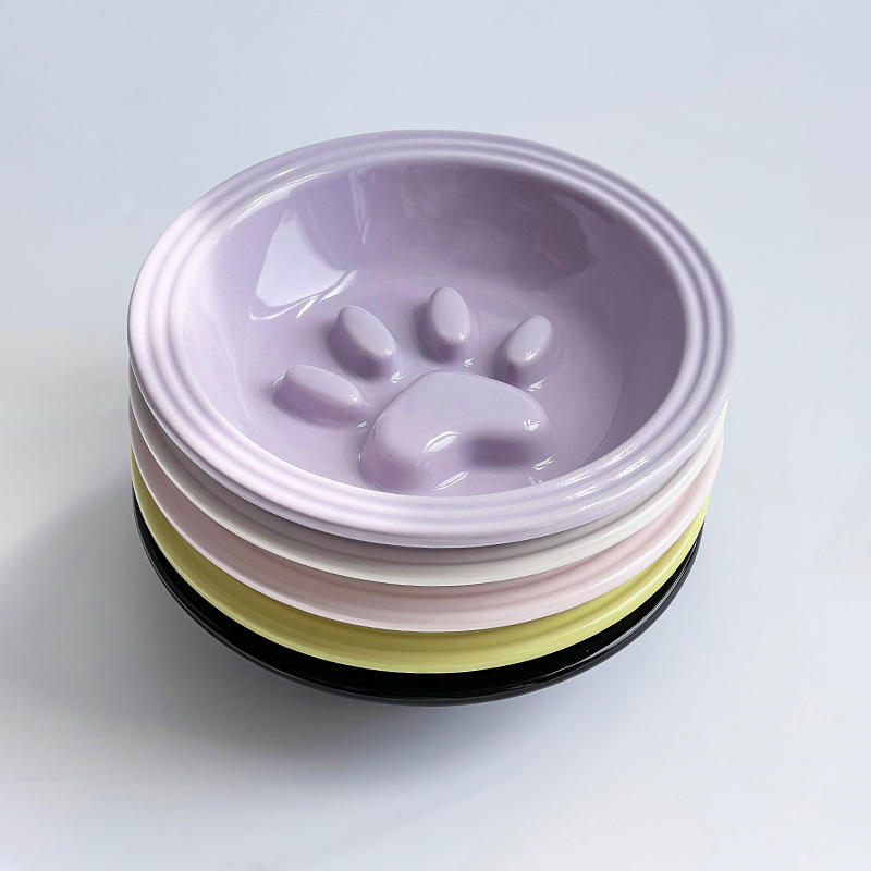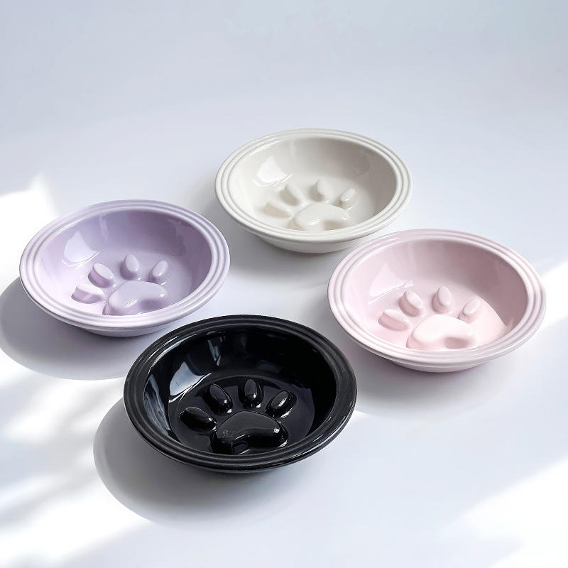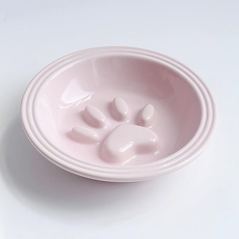 ชามเซรามิคลายอุ้งเท้าแมวน่ารักสำหรับแมวและลูกสุนัข ช่วยให้กินช้าลง ป้องกันการกินเร็ว สำหรับอาหารและน้ำ