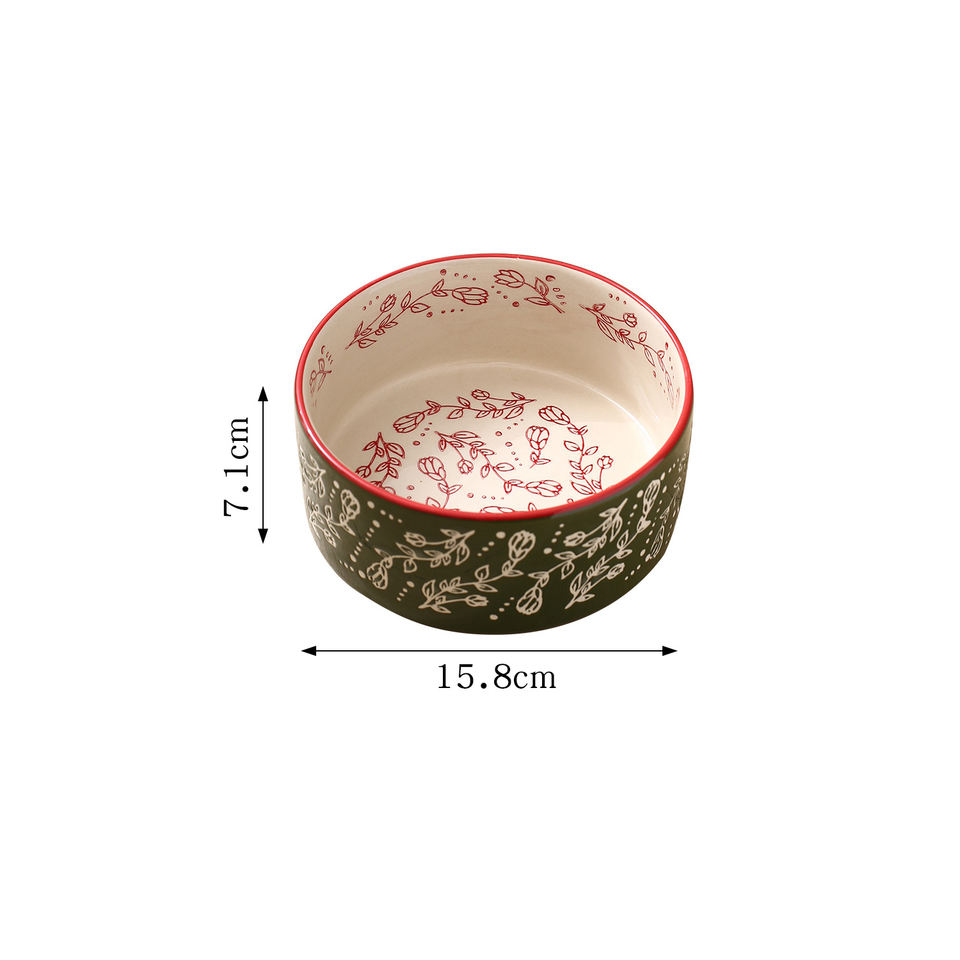DOE PET ชามเซรามิคลายดอกไม้สำหรับสุนัขชามอาหารและแมวใช้มือ
