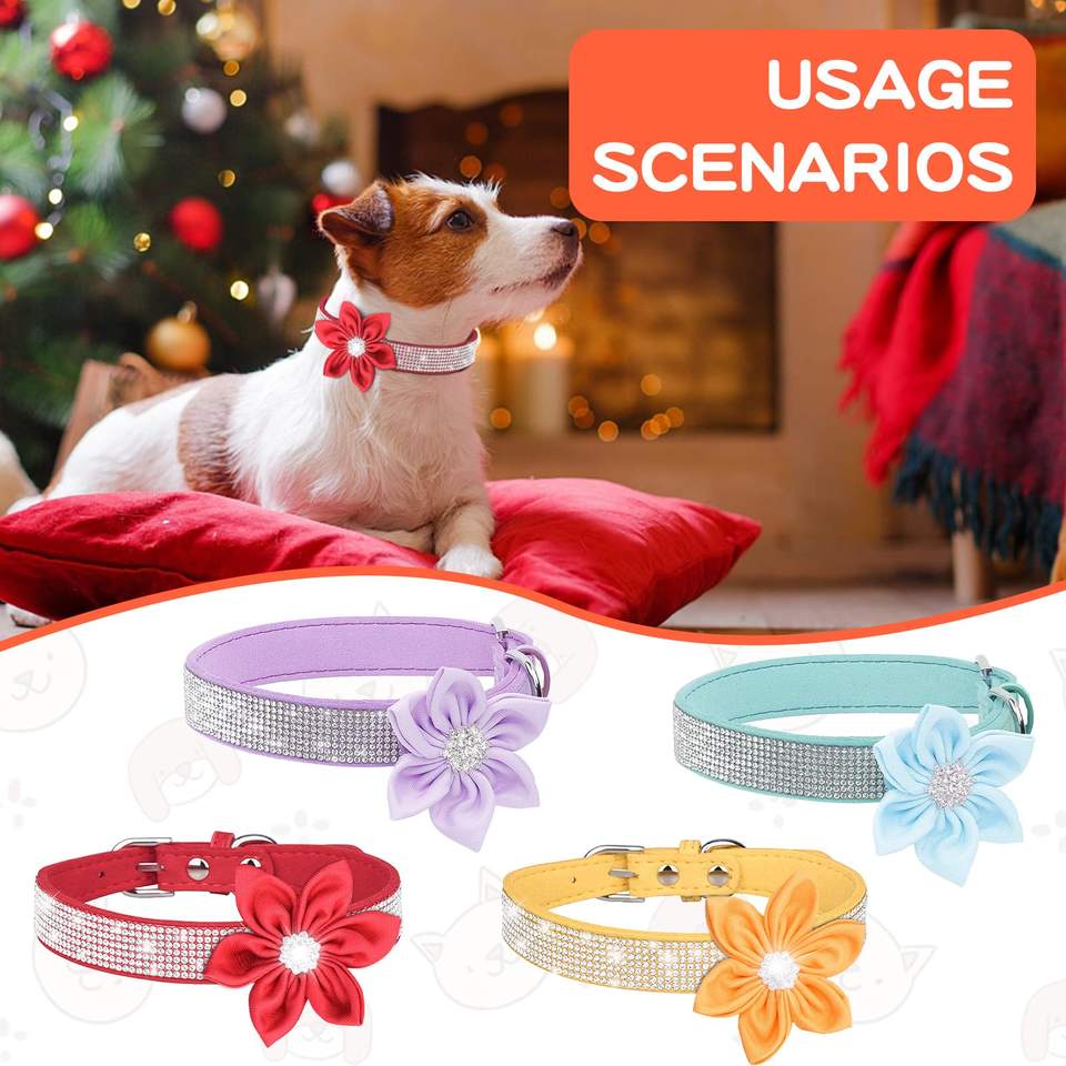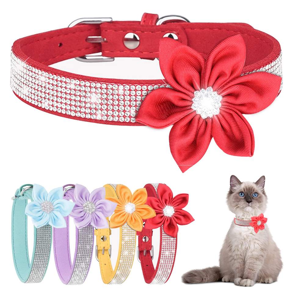 ปลอกคอสุนัขปลอกคอแมวปลอกคอ rhinestone SHINY ปรับขนาดได้ด้วยดอกทานตะวันน่ารักสำหรับลูกแมวและลูกสุนัข