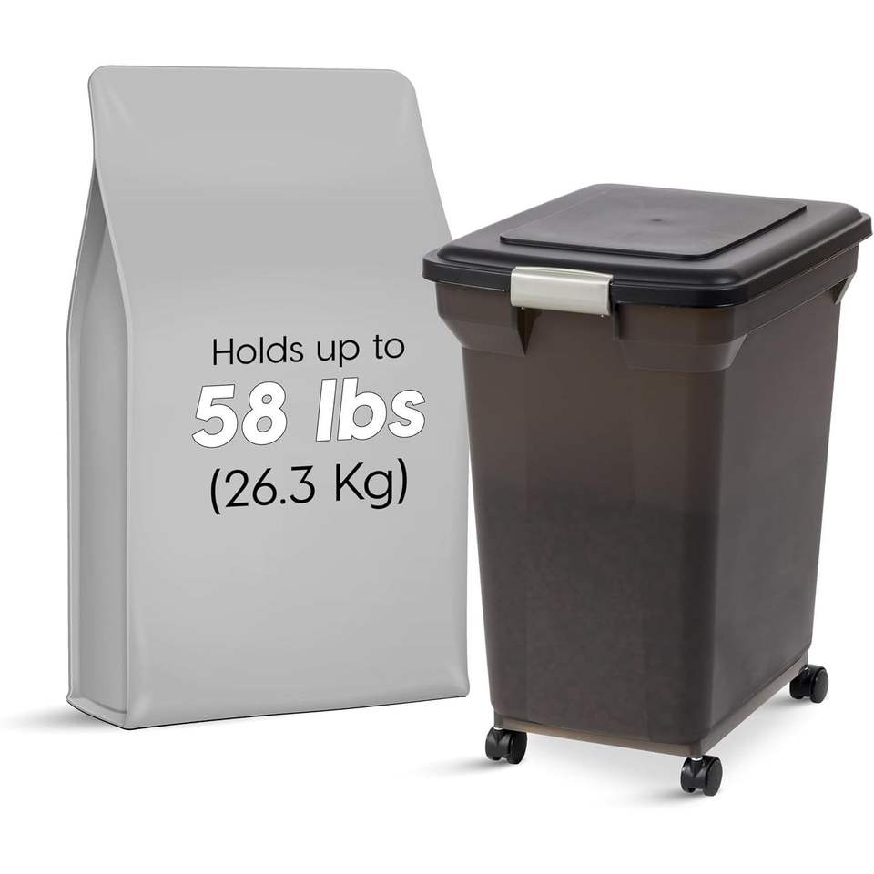 กล่องเก็บอาหารสัตว์เลี้ยง ขนาด 58 ปอนด์ พร้อมล้อเลื่อน ง่ายต่อการเคลื่อนย้าย สำหรับสุนัข นก และสัตว์เลี้ยงอื่นๆ พร้อมช่องใส่ชามอาหาร