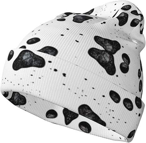 หมวกบีนนี่ถักลายรอยเท้าสุนัข หมวกไหมพรมอุ่นๆ สำหรับผู้หญิง หมวกบีนนี่ทันสมัย หมวกแบบไม่มีปีก หมวกทรงพับได้ สีดำ