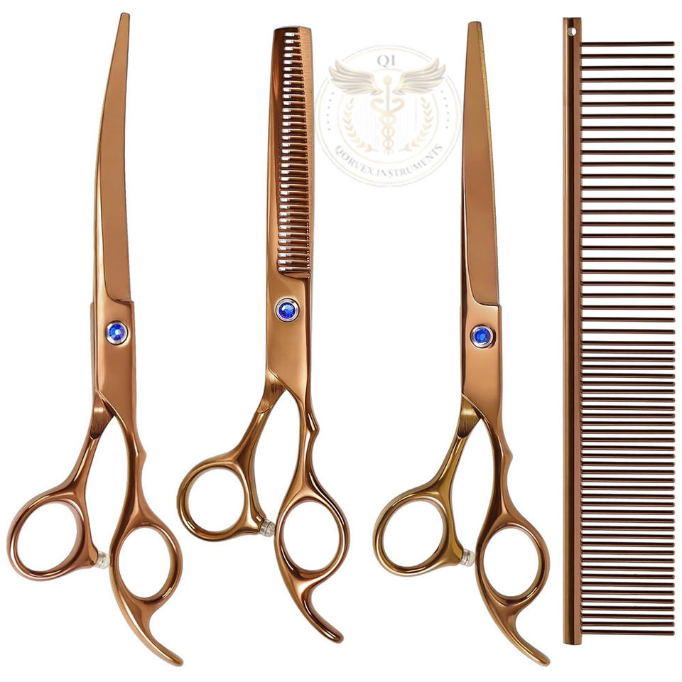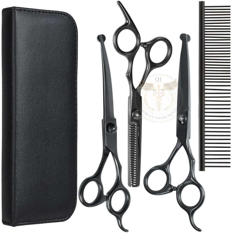 กรรไกรตัดแต่งขนสุนัข สแตนเลสอย่างดี สำหรับคนถนัดขวา 23 ซี่ ชุดกรรไกรซอยขนแบบมืออาชีพ หวีโค้ง 3 ชิ้น สำหรับสุนัข