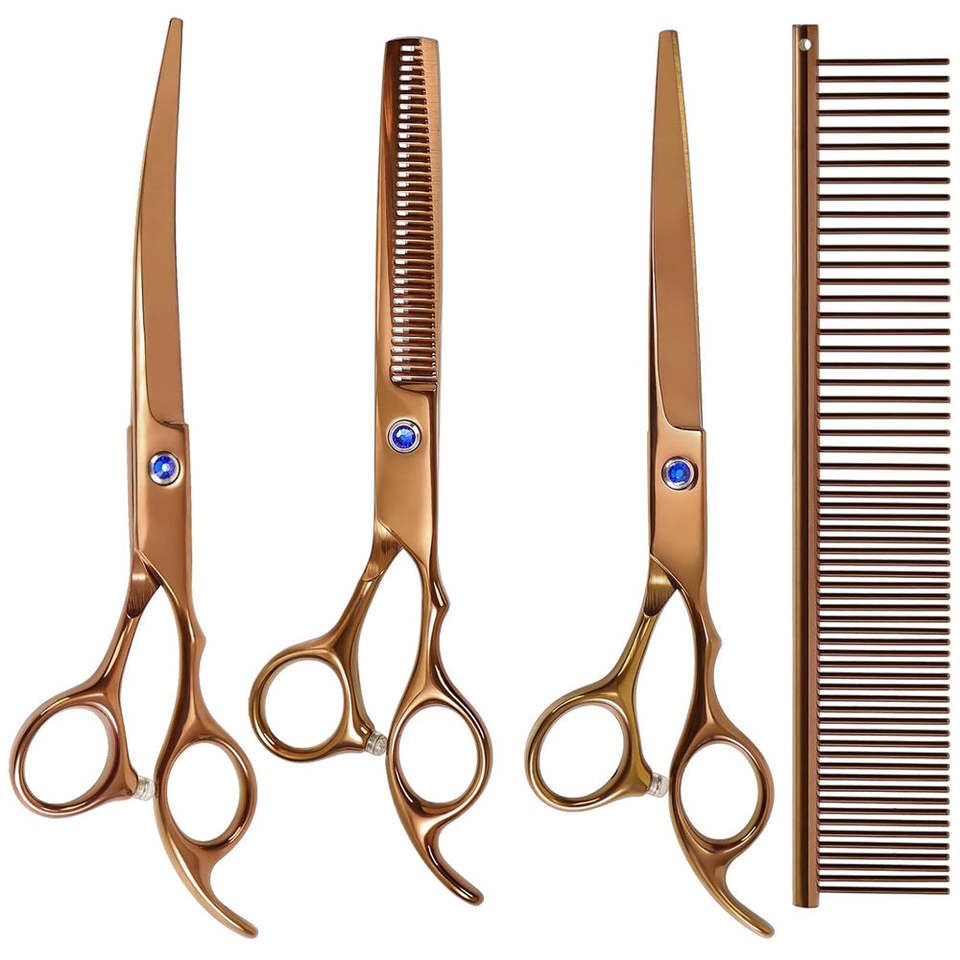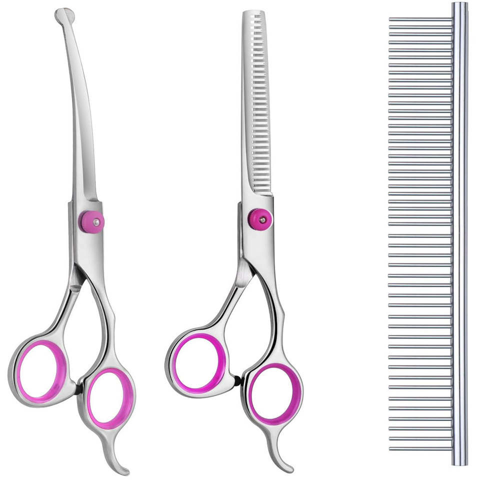 กรรไกรตัดขนสุนัข สแตนเลส ชุดกรรไกรตัดขนสัตว์เลี้ยงสำหรับสุนัขและแมว