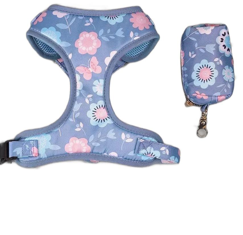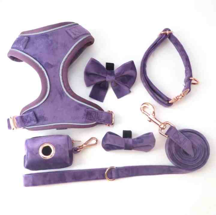 เสื้อกั๊กตาข่ายระบายอากาศสะท้อนแสงทำจากผ้าฝ้ายสีม่วงสายรัดสุนัขแบบไม่ดึงออกแบบได้ตามต้องการ