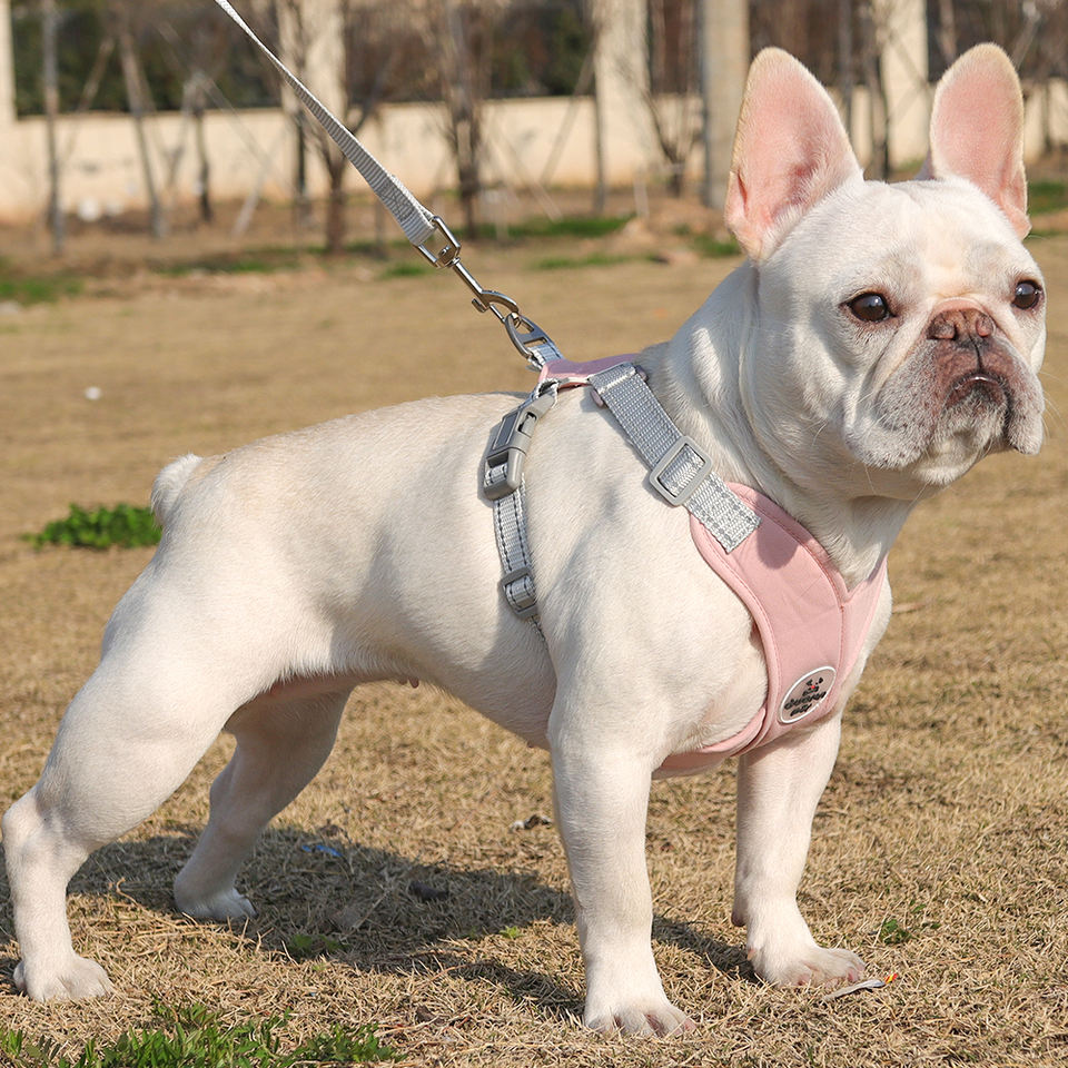 ชุดสายจูงสุนัขระบายอากาศได้ดีสายรัดหน้าอกสุนัขบูลด็อกฝรั่งเศสสะท้อนแสงสำหรับสุนัขขนาดเล็กขนาดกลางปลอกคอลูกสุนัข yorks