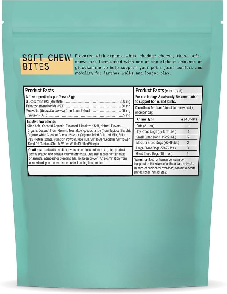 บรรเทาอาการปวดข้อของสุนัข-กลูโคซามีน, คอนดรอยติน, ขมิ้น-เคี้ยวนุ่มเสริมสะโพกและข้อต่อสำหรับสุนัข