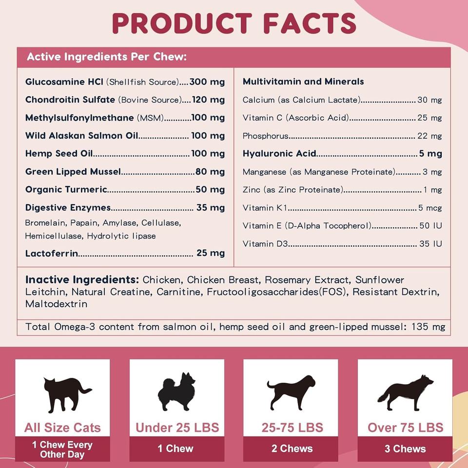 Dog Joint Pain Relief Treats - Glucosamine, Chondroitin, Turmeric- Soft Chews Hip and Joint Supplement for Dogs