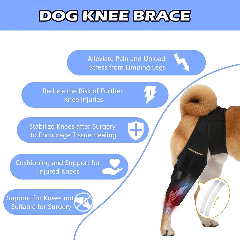 ผ้าพันเข่าสำหรับสุนัขขนาดเล็กและขนาดใหญ่ ช่วยพยุงขาหลังและขาหน้า บรรเทาอาการปวด ฟื้นฟูอาการบาดเจ็บ ปลอกพันเข่าสำหรับสัตว์เลี้ยง