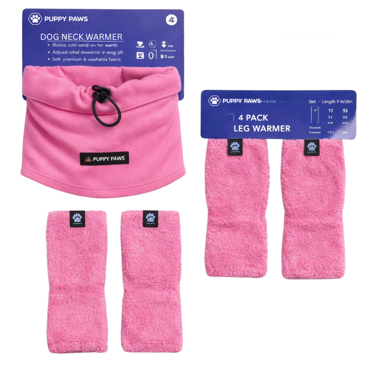 Dog Leg Warmer and Earmuff Protector Set Pink Cozy Fleece Sleeves with Soft Head Wrap for Warmth Stress Relief and Comfort