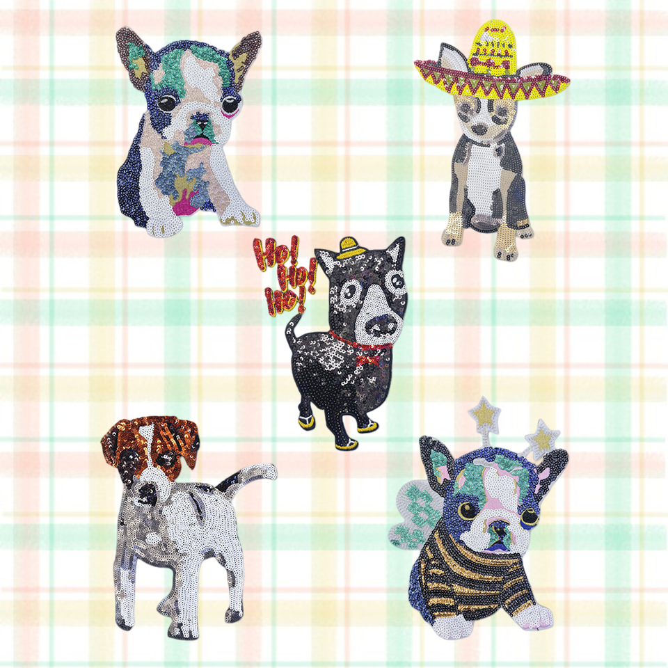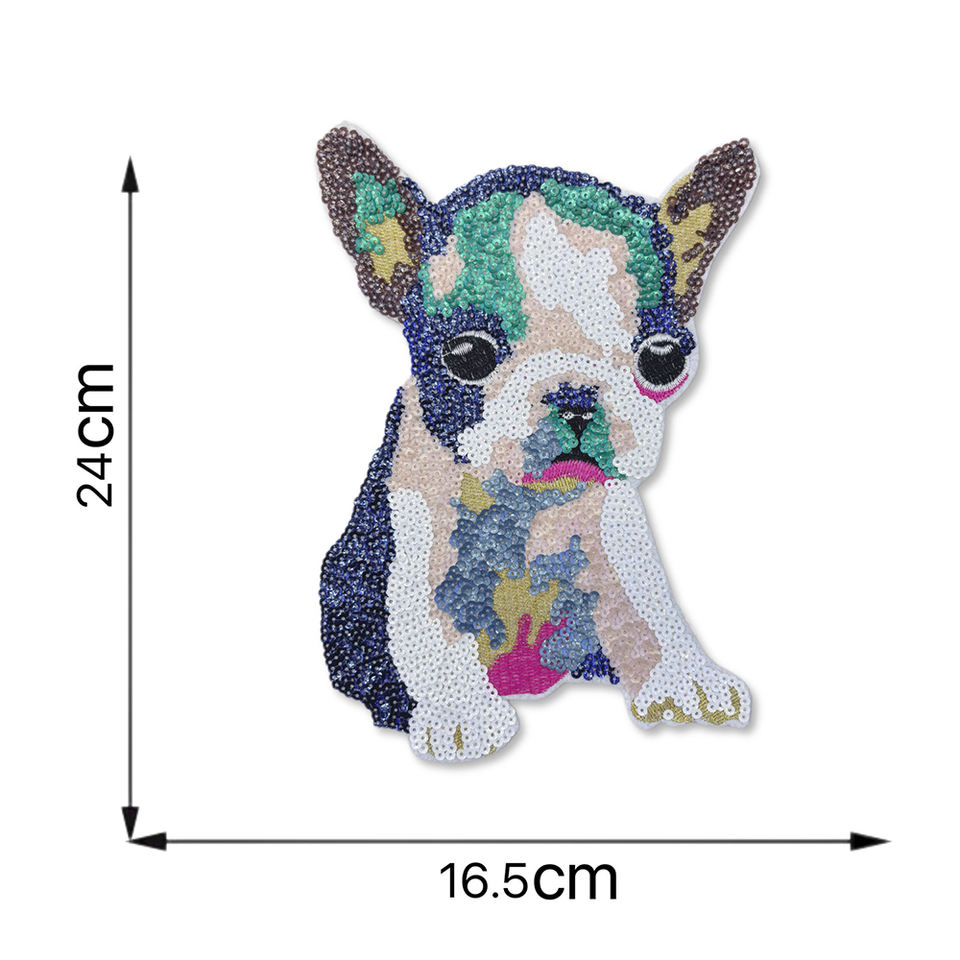 แผ่นปะรูปสัตว์แบบรีดติด ทำจากผ้าแคนวาส พีวีซี พลาสติก ประดับเลื่อมลายสุนัข สำหรับตกแต่งเสื้อผ้าและเครื่องประดับ