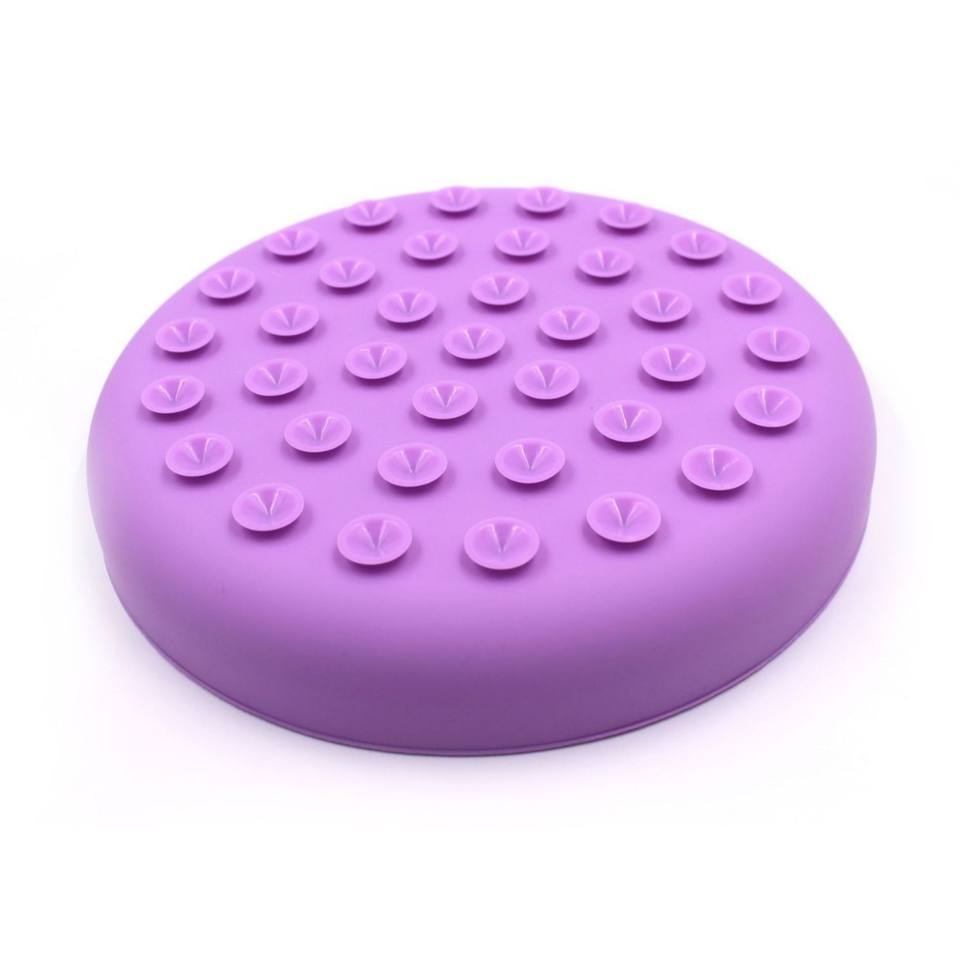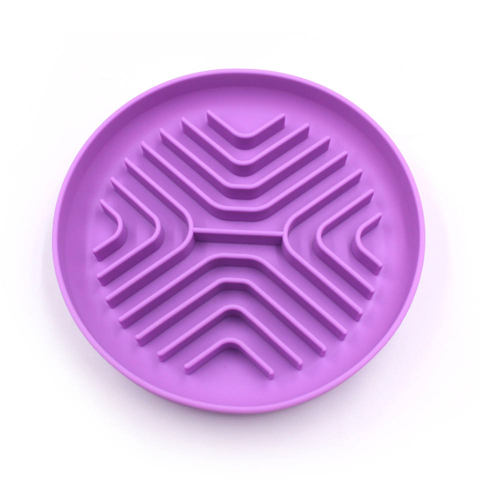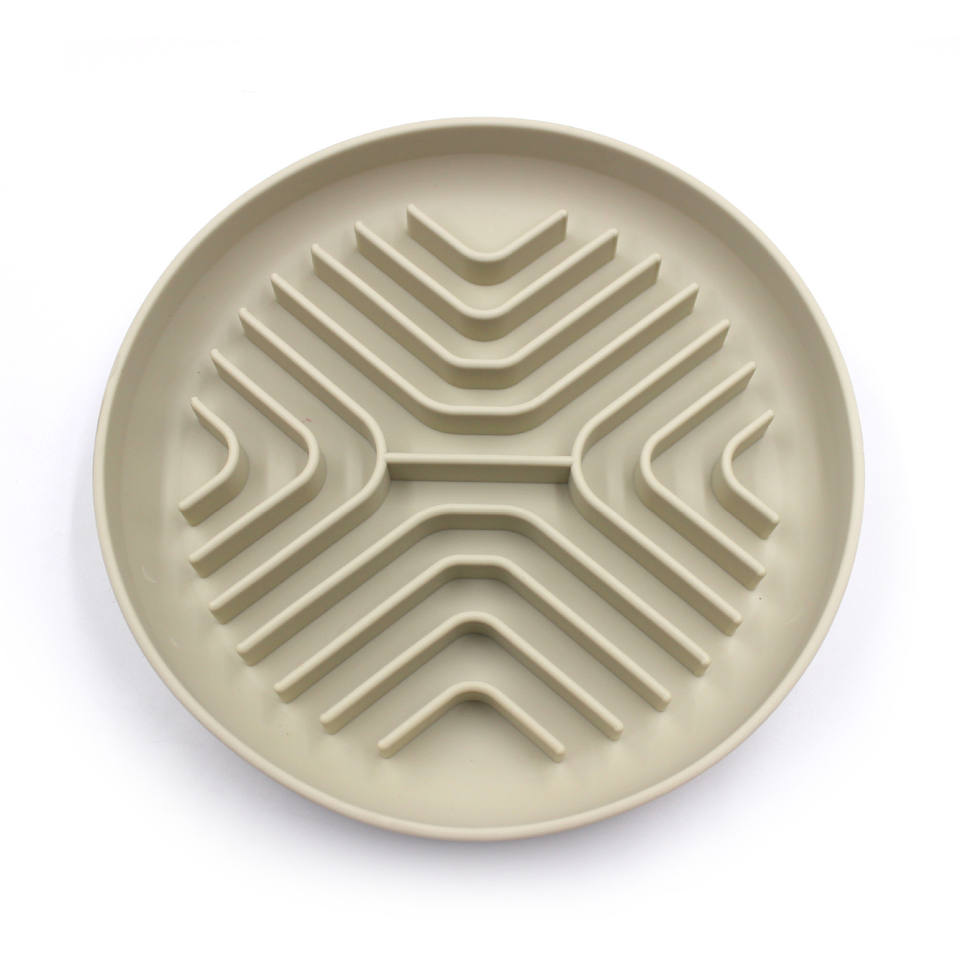แผ่นรองเลียกันน้ำสำหรับสุนัข ทำจากซิลิโคน สีเบจ ลายข้าวสาร ช่วยให้กินช้าลง ป้องกันการสำลัก ใช้สำหรับฝึกสุนัขกินอาหาร