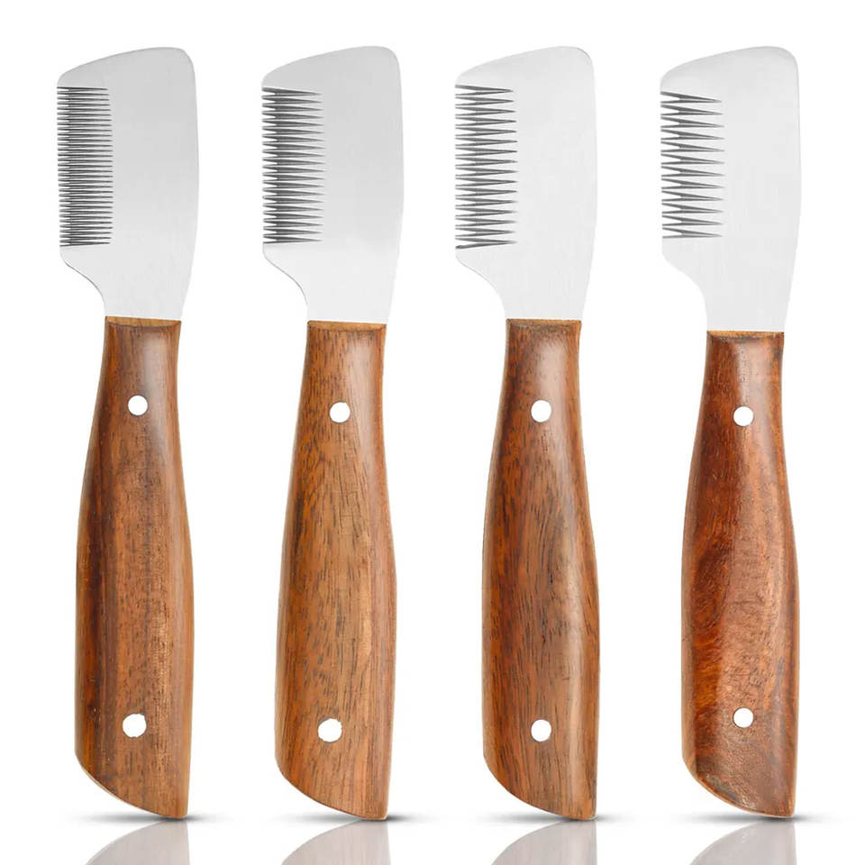มีดโกนขนสุนัขแบบคลาสสิก ด้ามไม้ อุปกรณ์สำหรับสัตว์เลี้ยง หวีโลหะสำหรับตัดขนสุนัข