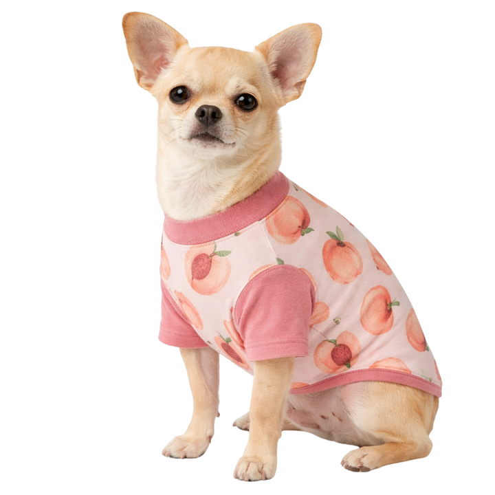 เสื้อกันแดดสำหรับสุนัข ลายพีช น้ำหนักเบา ป้องกันรังสียูวี เสื้อยืดสำหรับสัตว์เลี้ยงฤดูร้อน เนื้อผ้านุ่ม ยืดหยุ่น ระบายอากาศได้ดี เสื้อผ้าสำหรับสุนัข