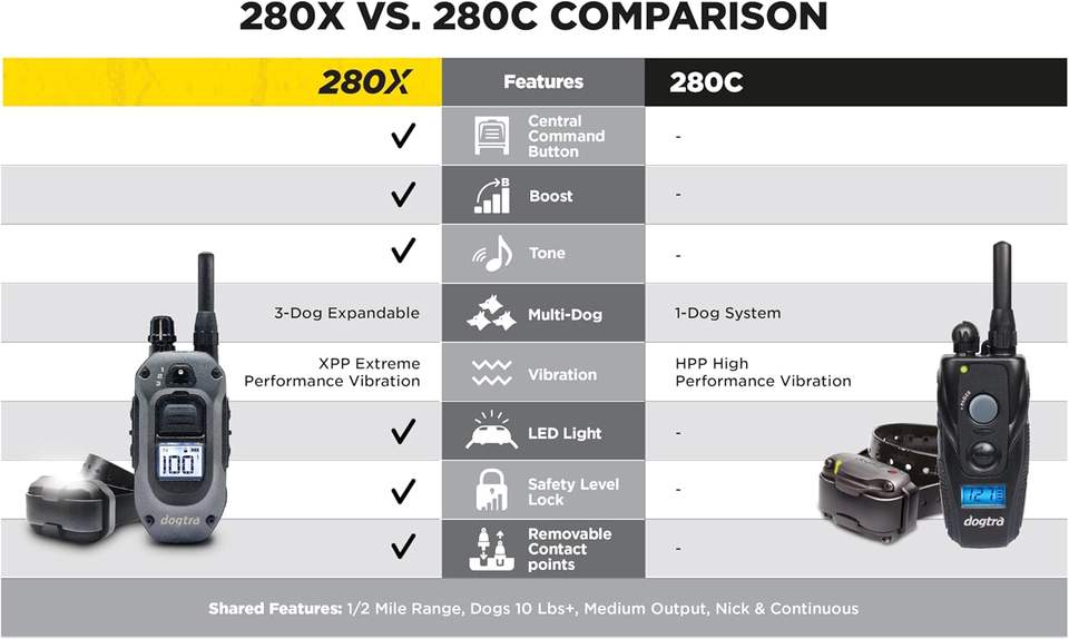 ปลอกคอสุนัข Dogtra 280X รุ่นใหม่ พร้อมรีโมท สำหรับสุนัขน้ำหนักมากกว่า 10 ปอนด์ ระยะควบคุม 1/2 ไมล์ ไฟ LED ควบคุมได้ 100 ระดับ สำหรับสุนัขที่ขี้เกียจ