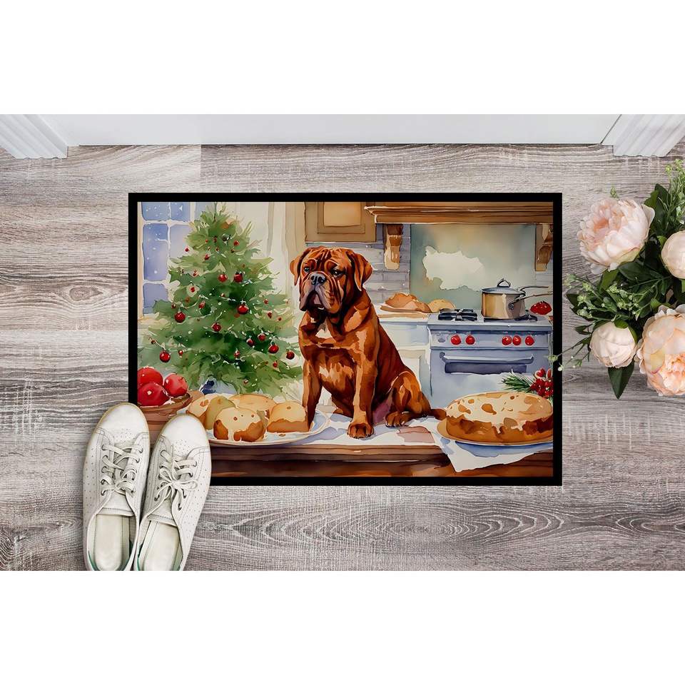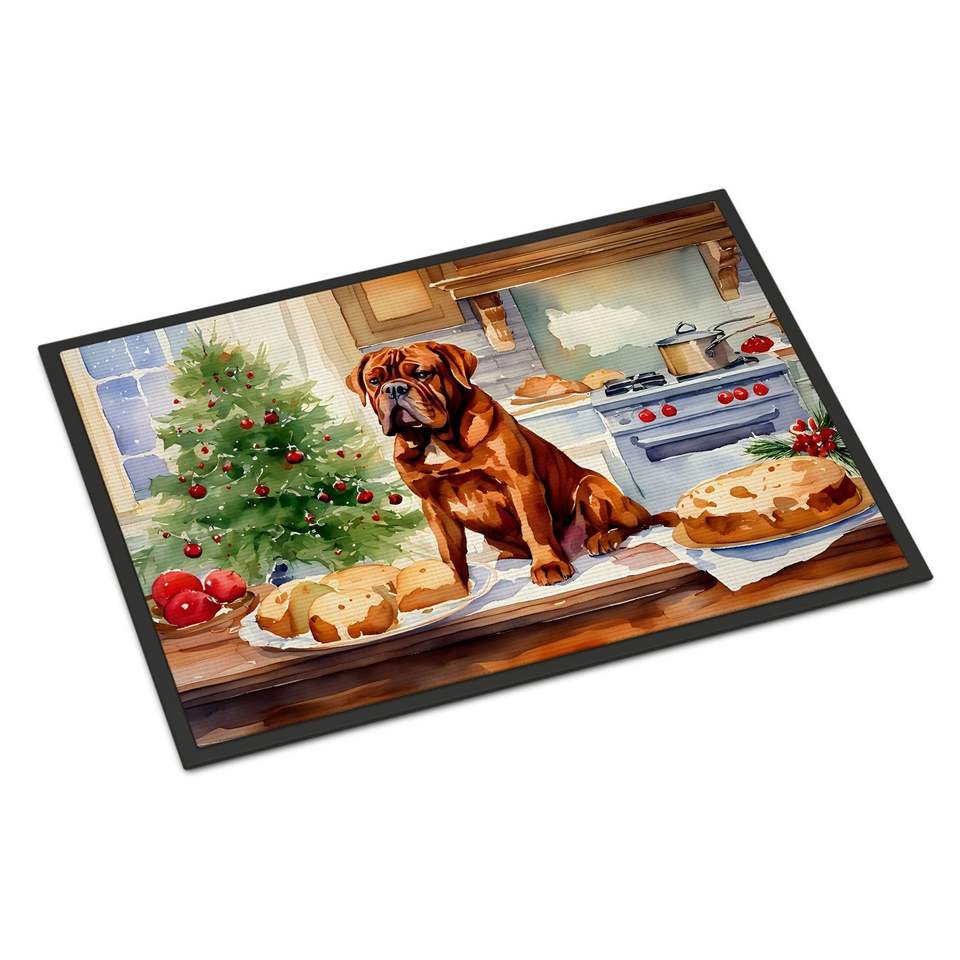 Dogue De Bordeaux Christmas Cookies Doormat Non-Slip Indoor/Outdoor Entryway Rug Low Pile 24H X 36W Washable Front Door Mat