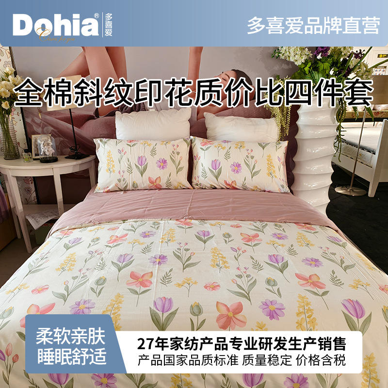 ชุดเครื่องนอนผ้าฝ้ายแท้โดฮิอา 4 ชิ้น ปลอกผ้านวม ผ้าปูที่นอน ผ้าฝ้ายทั้งหมด เป็นมิตรกับผิว เป็นมิตรกับสิ่งแวดล้อม สไตล์หอพัก