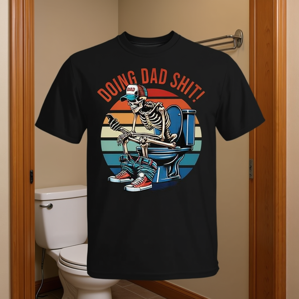 Doing Dad Sht Skeleton Toilet T-Shirt Unique and Fun Design for the Bathroom for Over Door Racks