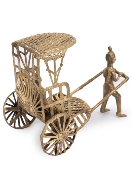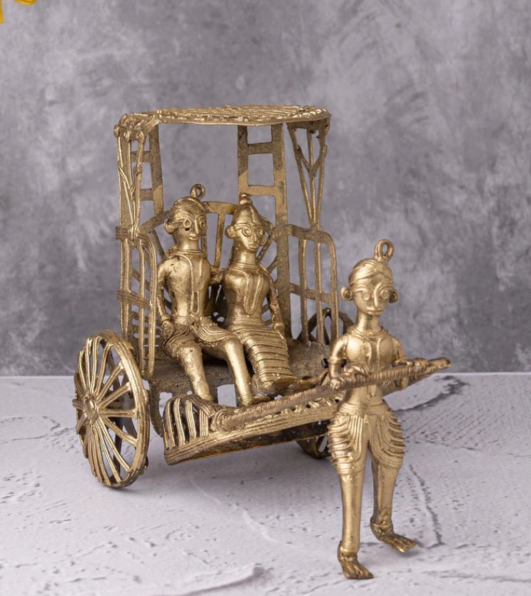 Dokra Art Hand Pulled Rickshaw Home Decor Showpiece Gold Home Decor Modern Style Decorative