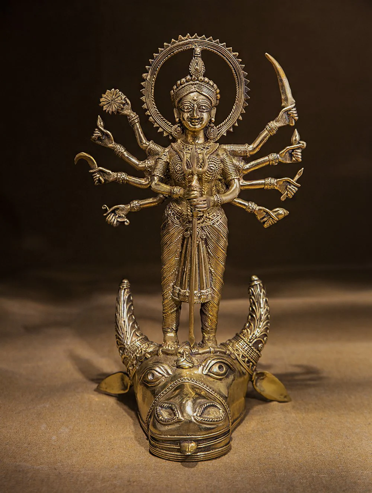 รูปปั้น dokra ของเทพธิดา Durga บนหัวควาย, ไอดอลเทพฮินดูที่มีจำหน่ายในราคาขายส่ง