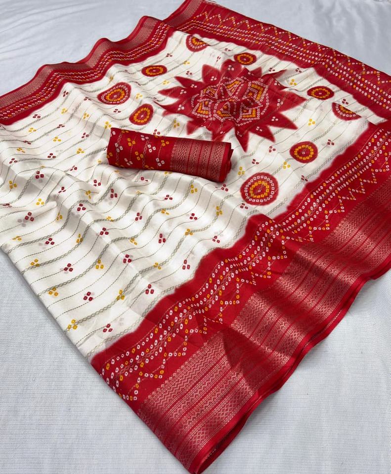 ผ้าไหมอินเดียโดลาพร้อมลายปักขอบแบบจาการ์ดและลายทอแบบซารี ชุดผ้าซารีและเสื้อสำหรับผู้หญิง ทำจากผ้าเดียวกัน มีสินค้าในสต็อก