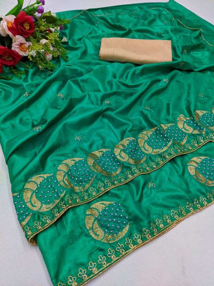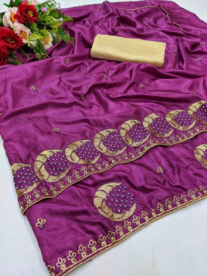 Dola Silk ชุดผ้าส่าหรีปักลายด้วยหินหนาพร้อมเสื้อชิ้นสวยงามชุดสำหรับงานแต่งงานของผู้หญิงอินเดียส่าหรี
