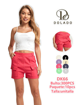 โดลาโด้ กางเกงขาสั้นคาร์โก้ผู้หญิงเอวสูงสีทึบผ้าใบระบายอากาศได้ดีกางเกงขาสั้นลำลองหนึ่งขนาด DK66