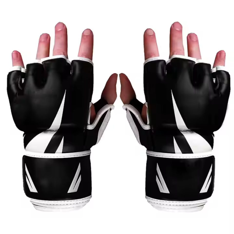 ถุงมือกีฬา MMA ของผู้ชาย Dolanto หนังสีดำล้วนปรับแต่งสไตล์สำหรับมืออาชีพ
