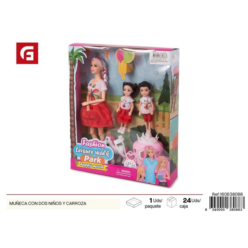 Doll with two children and carriage - Dolls and toys