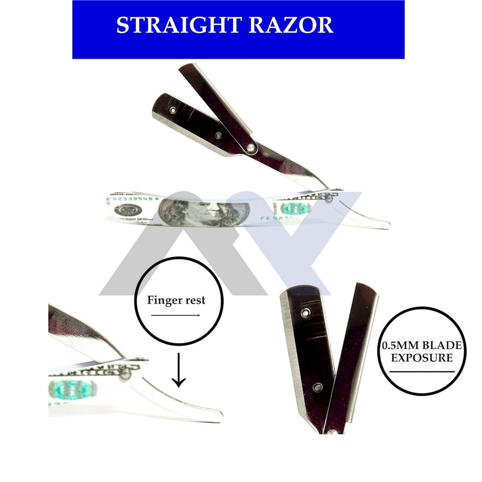 มีดโกนหนวดช่างตัดผมมืออาชีพมีด้ามจับพิมพ์ลายดอลลาร์ทำจากสเตนเลสทนทานสำหรับช่างตัดผม