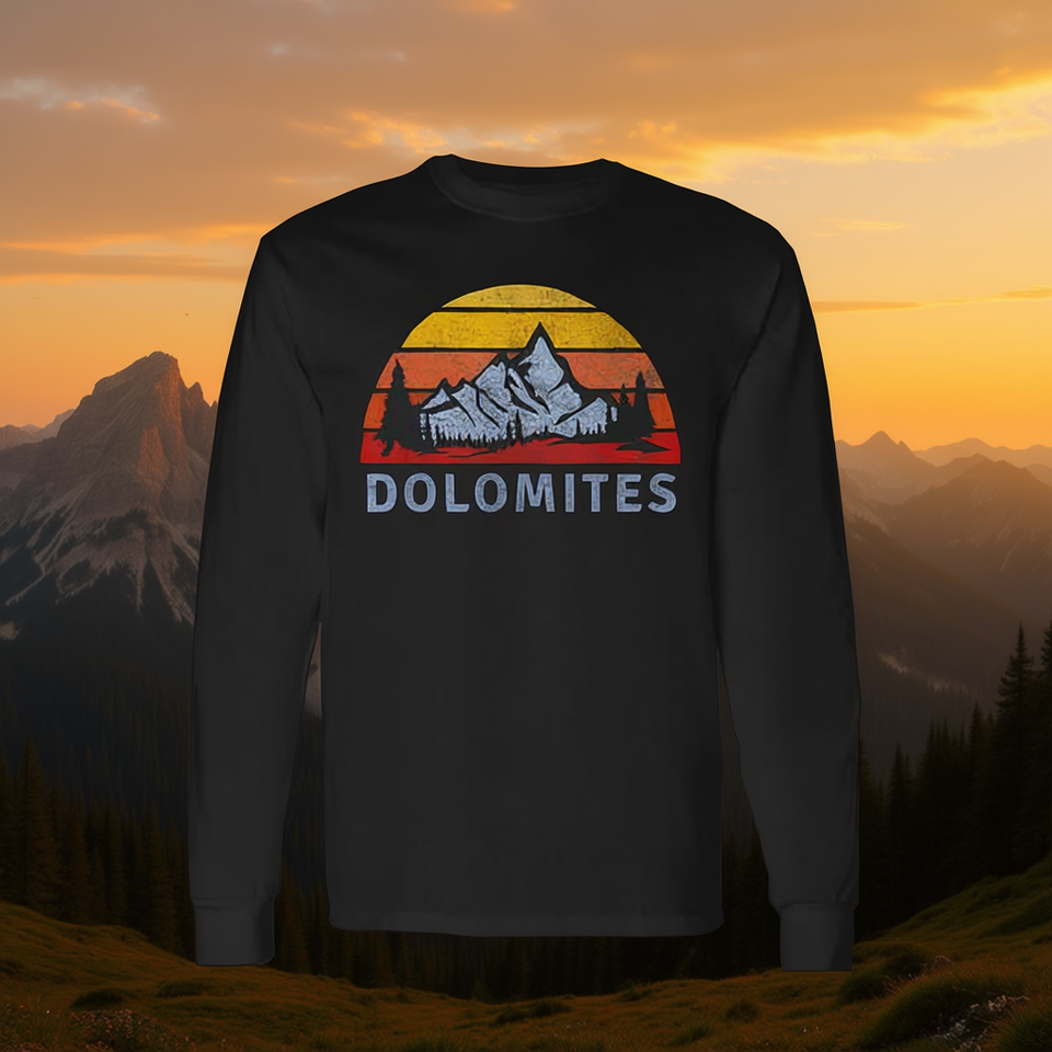 เสื้อยืดแขนยาวลายโดโลไมต์ เรโทร เมาน์เทน ซันเซ็ท