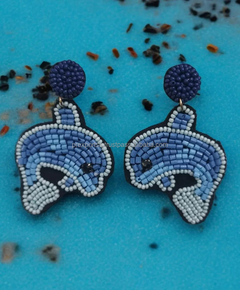 Dolphin Beaded Earrings Handmade Sea Animal Embroidered Jewelry Ocean Theme Drop Earring Custom Cute Beads Statement Supplier