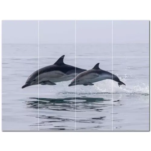 ภาพจิตรกรรมฝาผนังกระเบื้องเซรามิกปลาโลมา PT500526 48 "W x 36" H ชุด12X12กระเบื้อง