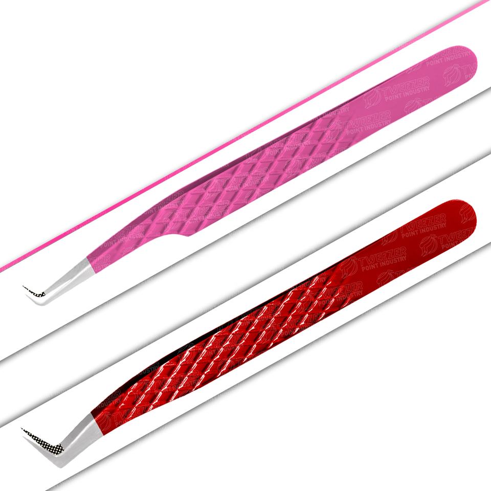 Japanese Stainless Steel Eyelash Extension Tweezers Dolphin Shape with Diamond Grip Pointed Tip Multi-Color Fiber Tip Tweezers