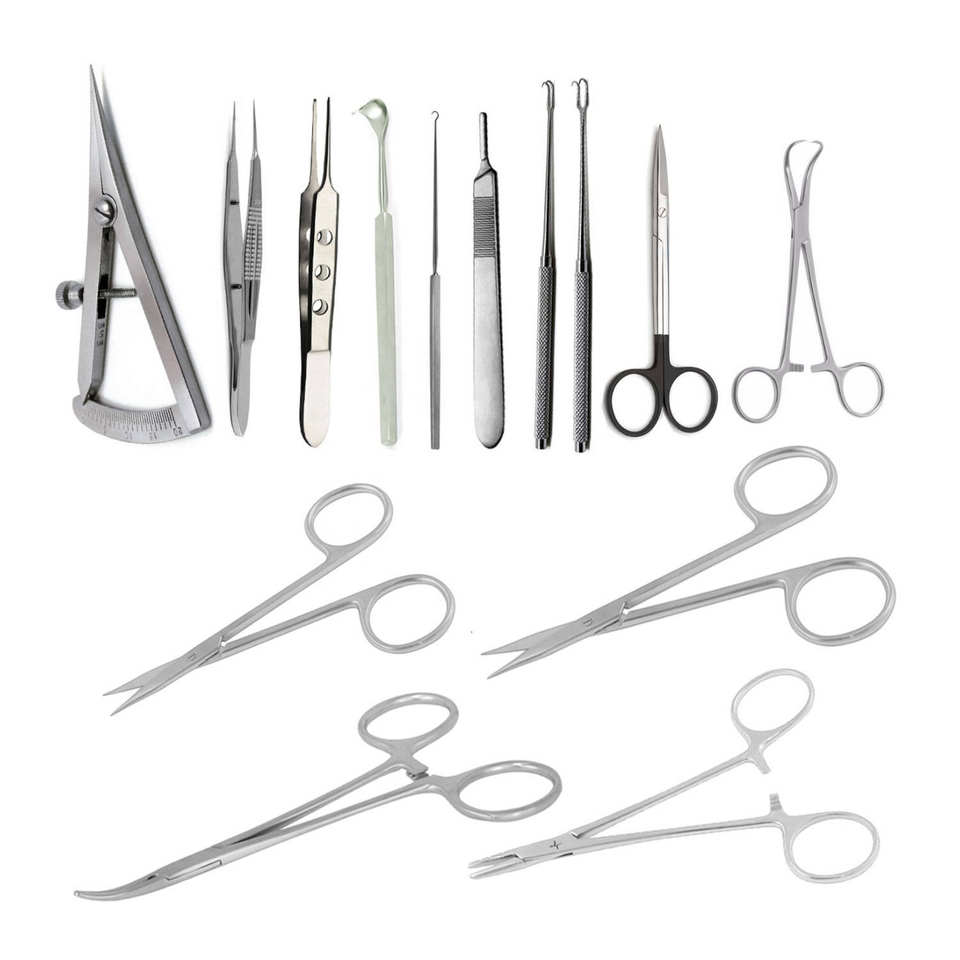 ชุดเครื่องมือผ่าตัดตาแบบแมนนวลสแตนเลสสตีล 14 ชิ้น ยี่ห้อ Dom Med Dynamics สำหรับการผ่าตัดเปลือกตา (Blepharoplasty) รวมถึงการผ่าตัดจมูกและดวงตา
