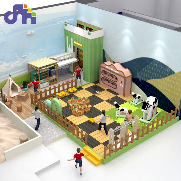 อุปกรณ์สนามเด็กเล่นจำลองฟาร์มนมในร่ม โดเมอร์รี่ อุปกรณ์สนามเด็กเล่นสำหรับเด็กเล็ก บ้านเด็กเล่น เกมเด็ก ของเล่น
