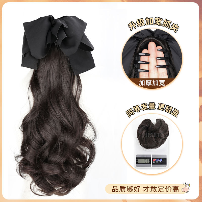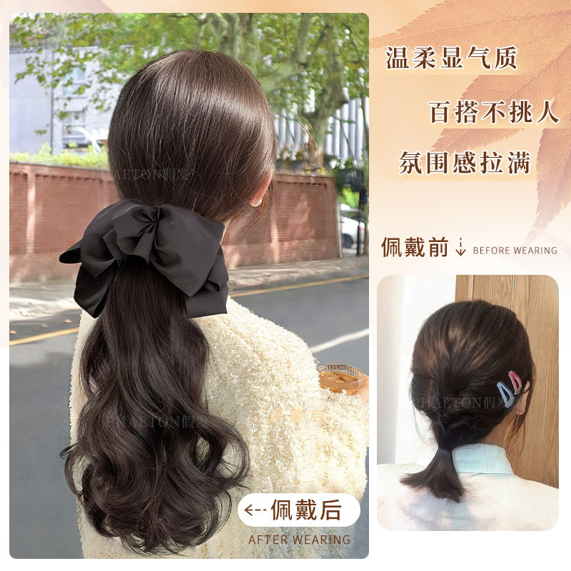 วิกผมผู้หญิงแบรนด์ในประเทศ แบบหางม้าติดกิ๊บหนีบ พร้อมโบว์ผูกผม หางม้าต่ำ ฟูเป็นธรรมชาติ สำหรับใช้ในชีวิตประจำวัน
