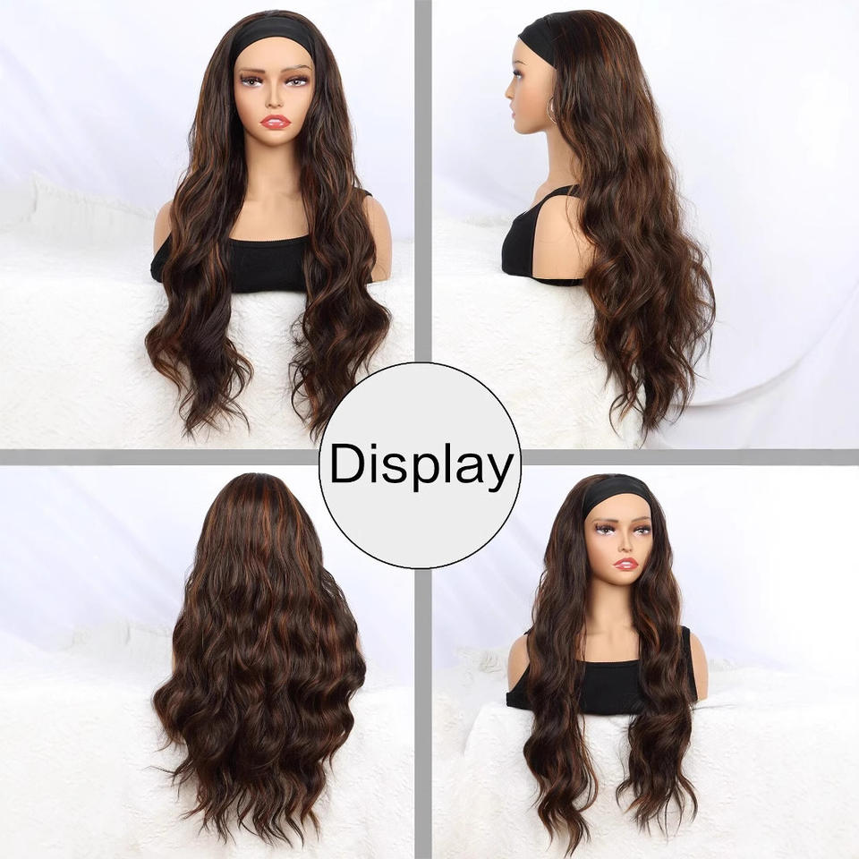 วิกผมสังเคราะห์แบบยาวหยักศก ยี่ห้อในประเทศ ขนาด 24 นิ้ว ลอนใหญ่ไล่เฉดสีบลอนด์น้ำผึ้ง ไม่ต้องใช้กาว สำหรับผู้หญิง