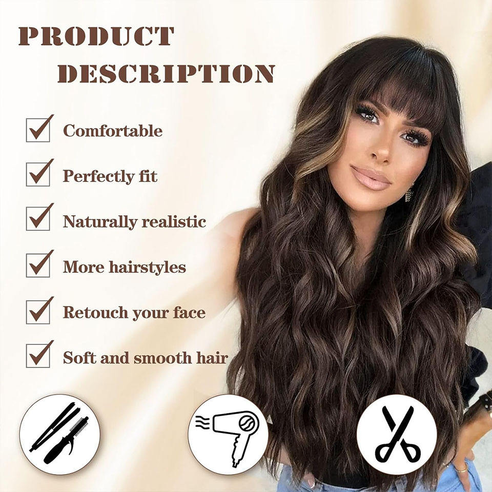 วิกผมยาวหยิกแบบดั้งเดิมของแบรนด์ในประเทศ 70 ซม. 220 กรัม พร้อมผมม้าปัดข้าง ทำจากเส้นใยทนความร้อนสูง แนวผมธรรมชาติ ปิดคลุมทั้งศีรษะ