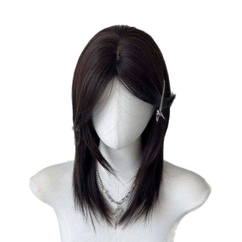 วิกผมยาวตรงยี่ห้อในประเทศ 48 ซม. สีดำธรรมชาติ วิกผมไฟเบอร์คาเนคาลอนพร้อมเส้นผมธรรมชาติสำหรับทุกรูปหน้า