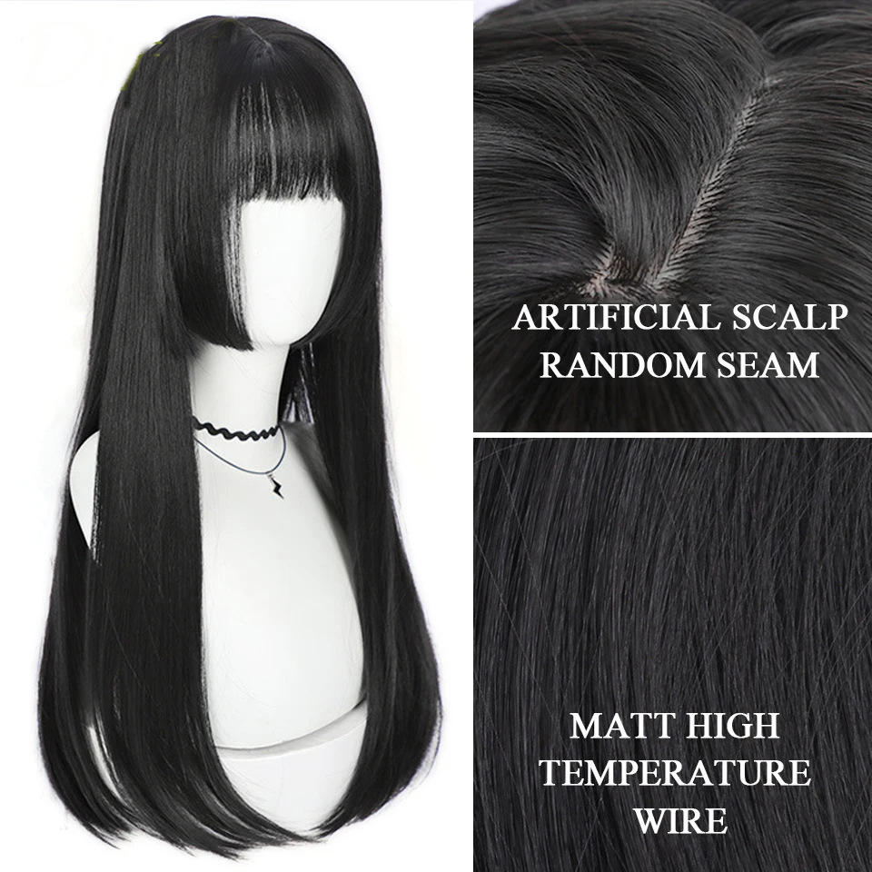 วิกผมตรงยาว 80 ซม. สีน้ำตาล ยี่ห้อในประเทศ เส้นผมทนความร้อนสูง แนวผมธรรมชาติ แบบเต็มศีรษะ