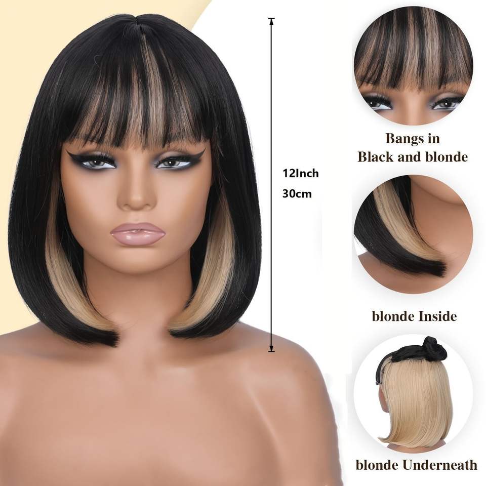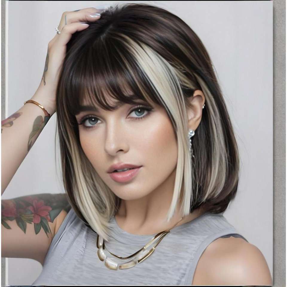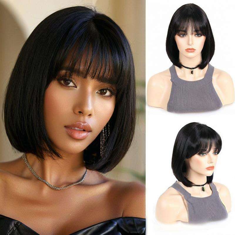 วิกผมสั้นตรงแบบมีหน้าม้า ตัดทรงบ๊อบ ทำจากเส้นใยทนความร้อนสูง สำหรับผู้หญิง แฟชั่นความงามสไตล์สาวงาม