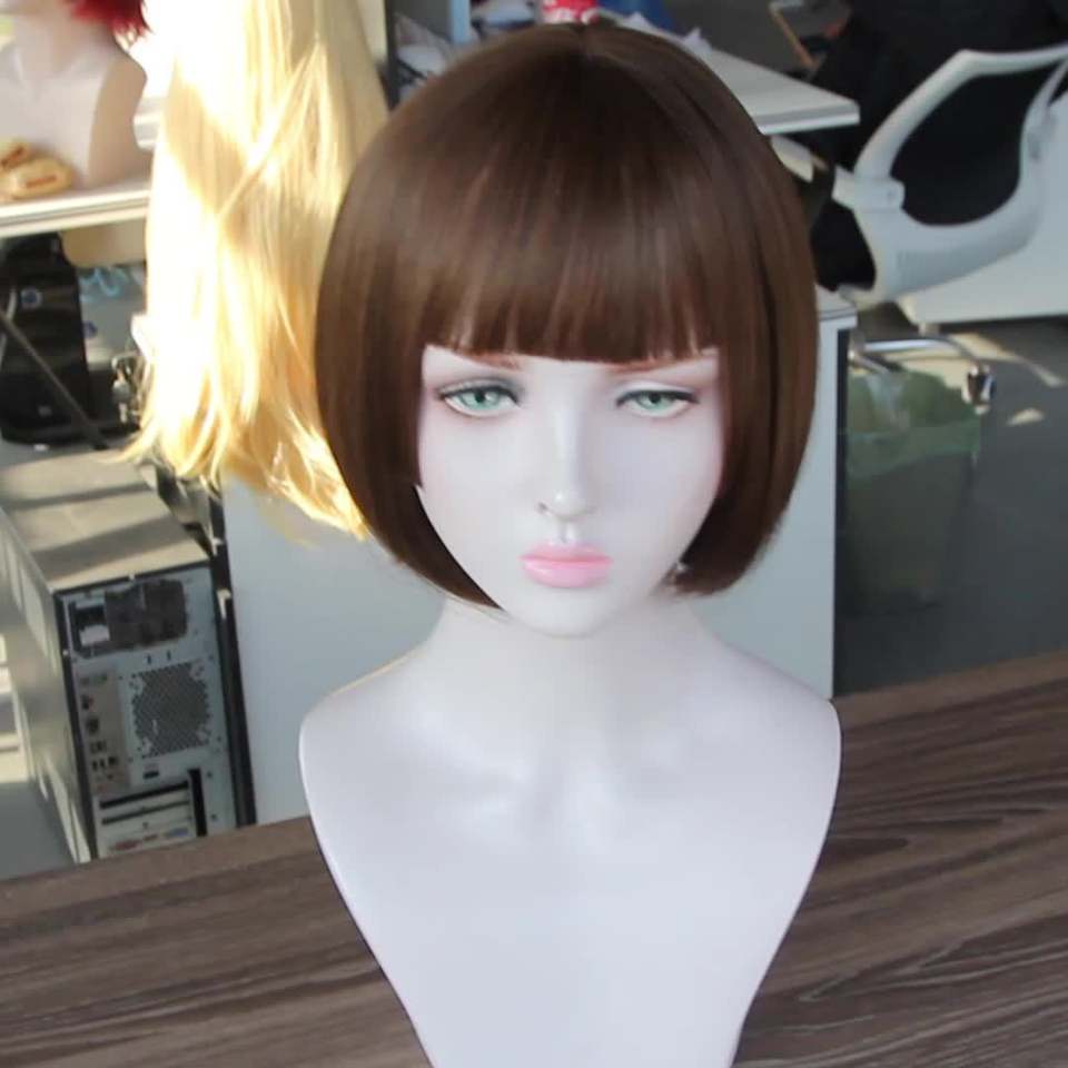 วิกผมบ๊อบสำหรับผู้หญิง ยี่ห้อในประเทศ ยาว 30 ซม. สีน้ำตาลเข้ม เส้นใยสังเคราะห์คาเนคาลอน ทรงผมธรรมชาติ แบบสั้นตรง