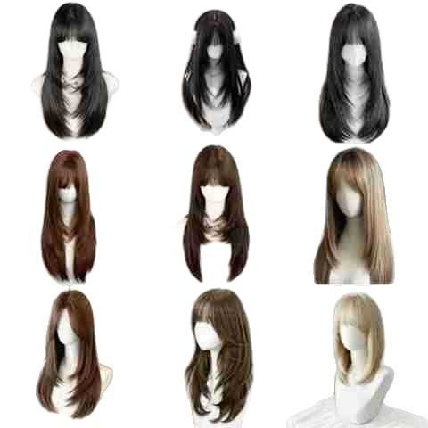 ผมหน้าม้าตรง 70 ซม. [สีน้ำตาลไล่เฉดแพลตตินั่ม] - แถมฟรีตาข่ายคลุมผม