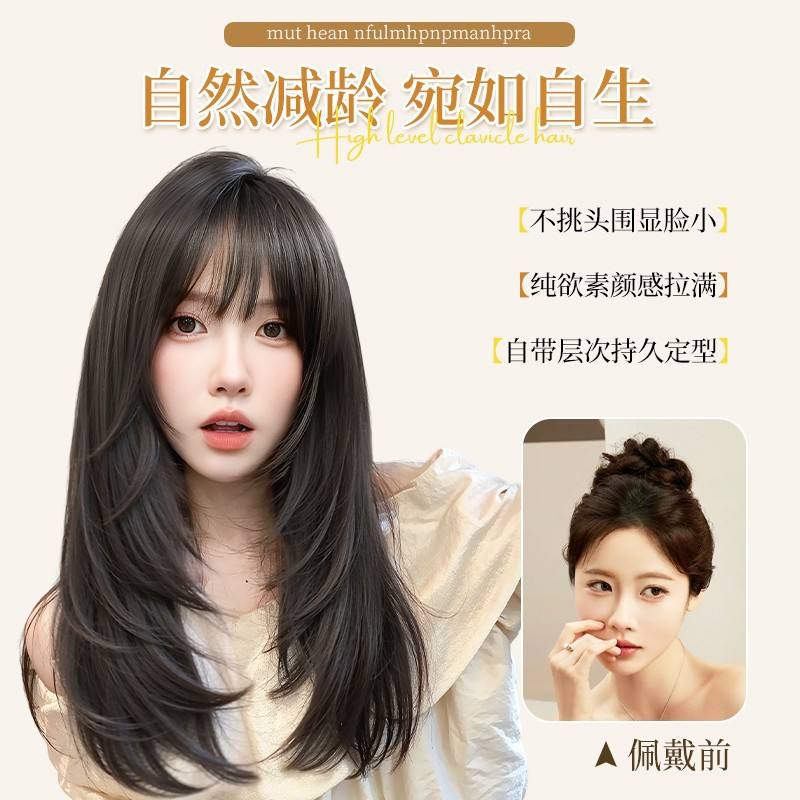 วิกผมยาวตรงสำหรับผู้หญิง ยี่ห้อในประเทศ เส้นใยทนความร้อนสูง ความหนาแน่น 130% พร้อมหน้าม้า วิกผมลูกไม้เต็มศีรษะ