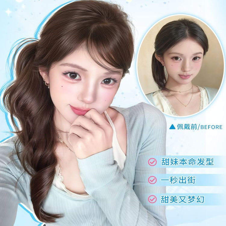 ผมหางม้าข้างสไตล์วินเทจ [สีน้ำตาลอ่อน] - สาวหวานตัวจริง