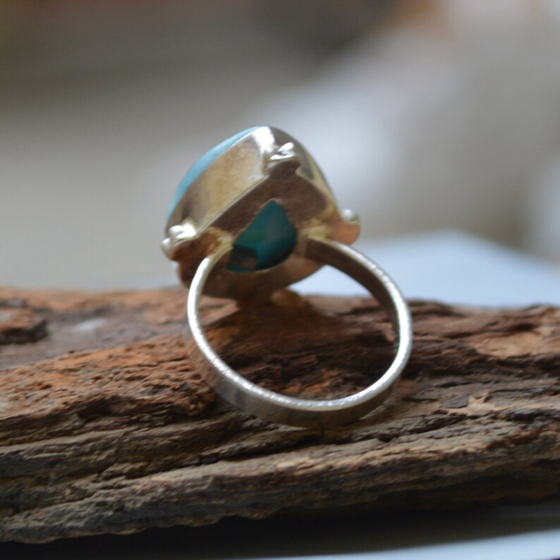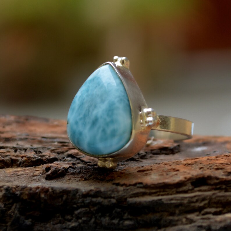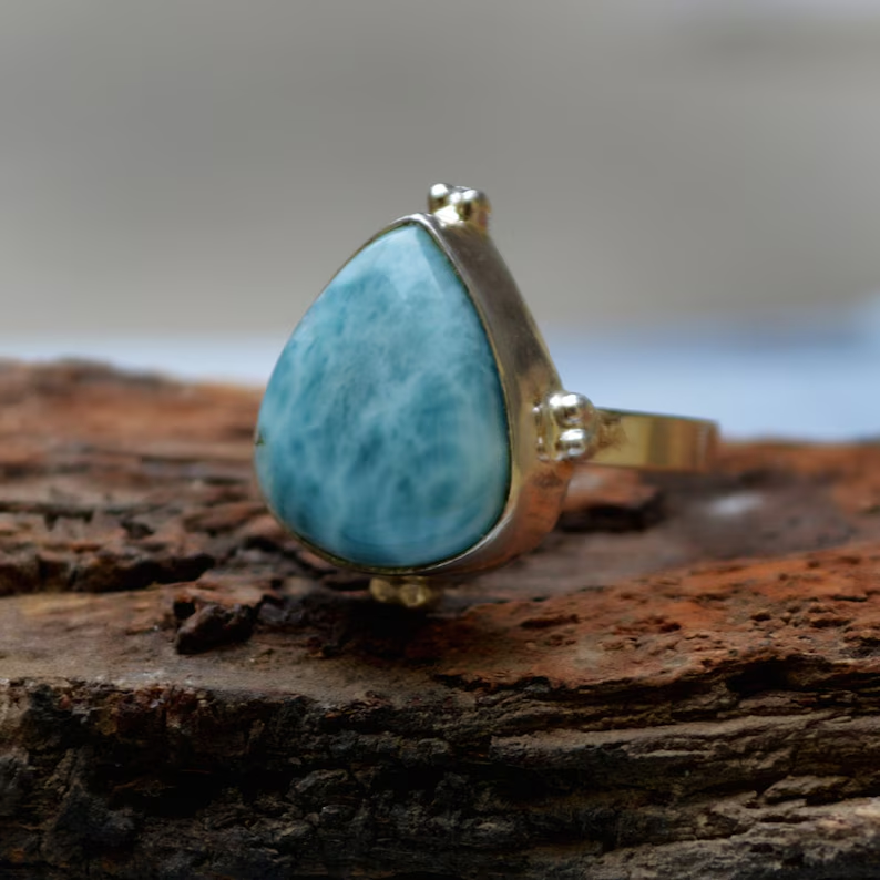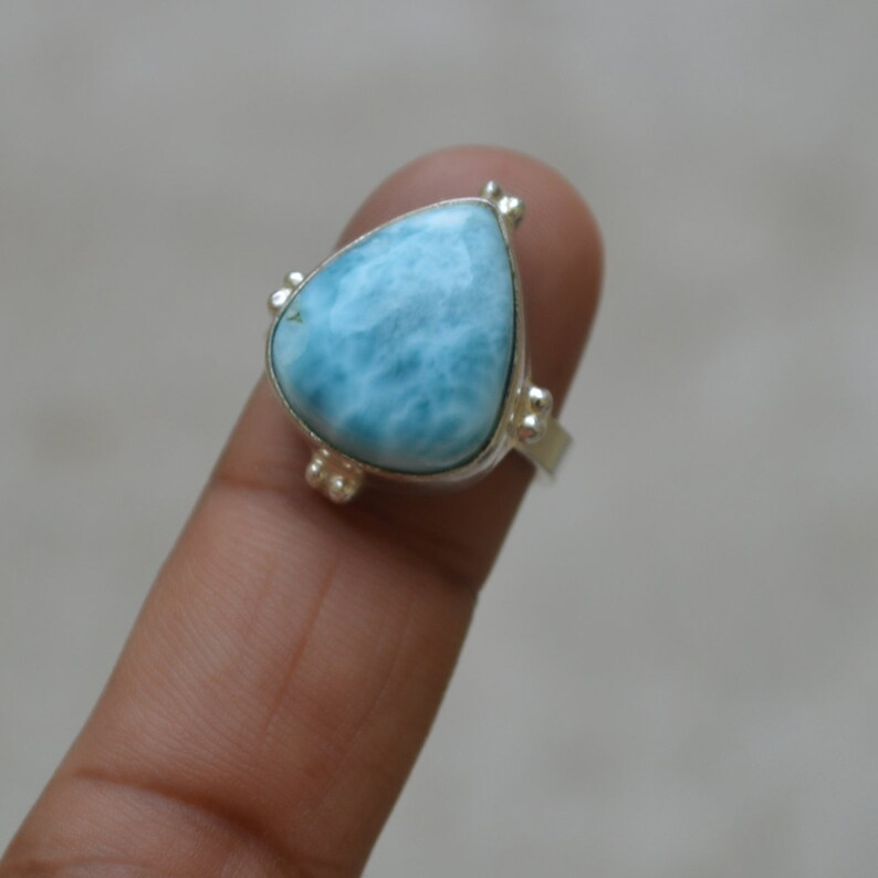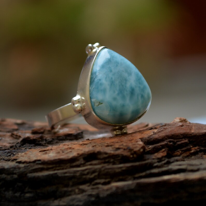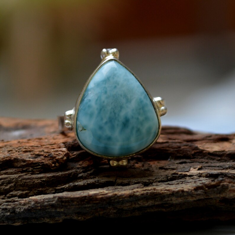 Dominican Larimar 925เงินสเตอร์ลิงสีฟ้า Larimar ของขวัญแต่งงานแหวนอัญมณีธรรมชาติที่ไม่ซ้ำกันสำหรับความเงียบสงบ