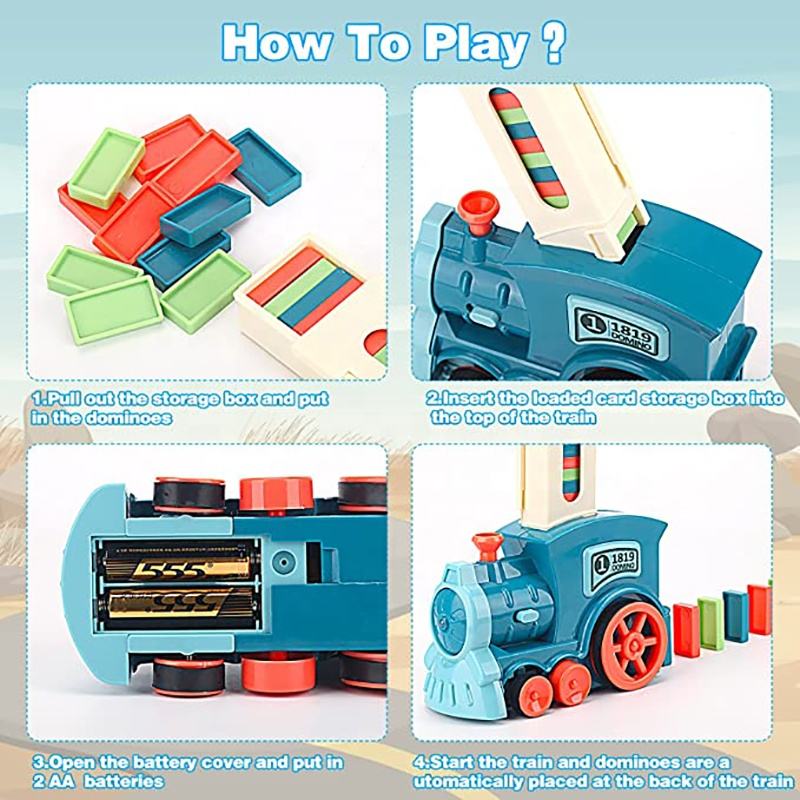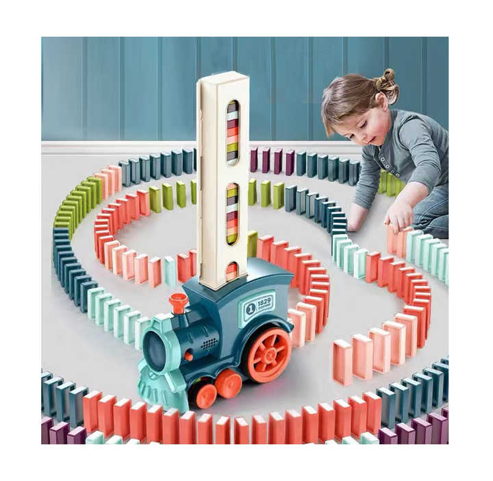 ชุดของเล่นโดมิโนรถไฟโดมิโนบล็อกของเล่นรถไฟโดมิโนแบบอัตโนมัติชุดรถของเล่นซ้อนเกมสนุกและรถไฟหลากสี DIY ของขวัญ