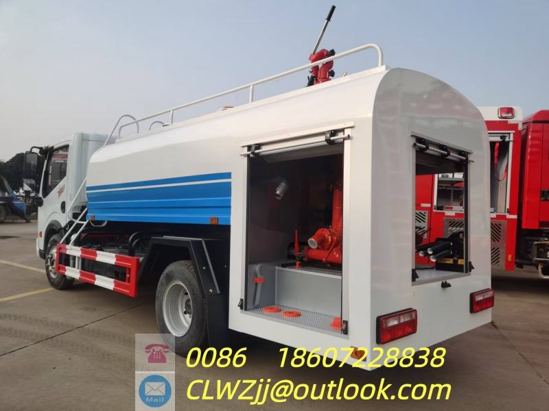 รถบรรทุกดับเพลิงขนาดเล็กตงเฟิง ดีเซลใหม่ 4 ตัน ความจุสูงสุด 5000 ลิตร ขับเคลื่อน 4x2 เกียร์ธรรมดา มาตรฐานไอเสียยูโร 3